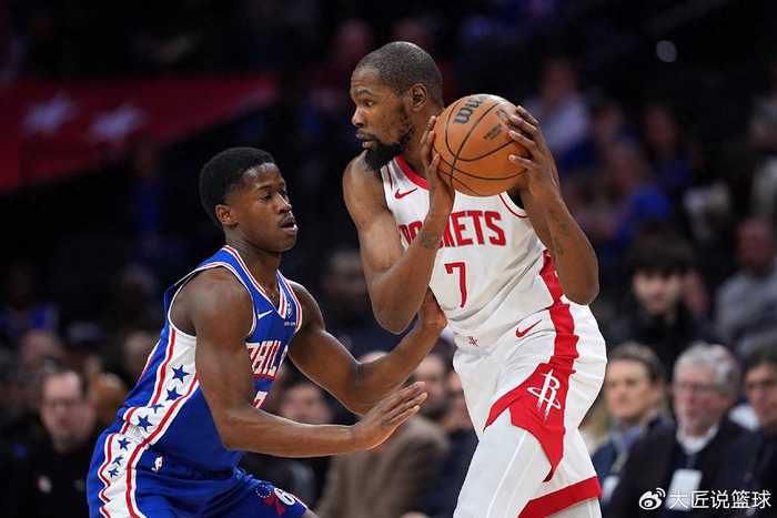 但随着比赛的进行,当小贾无法像过去几场一样命中三分时,火箭队脆弱的进攻体系开始崩盘,全队又一次进入到“啃老模式”,阵地战几乎只有杜兰特一人能够进球。